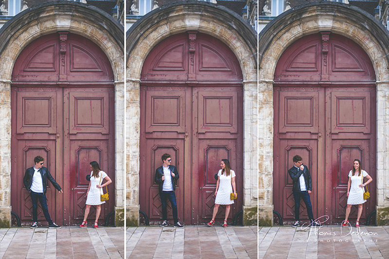 C’est donc un mois plus tard que nous nous sommes donnés rendez vous, là où ils s’étaient rencontrés lors de leurs études pour une love session dans les rues de Dijon. La météo annonçait de la pluie, mais au final, un soleil radieux nous attendait, même si l’orage menaçait. De la place de la libération au parc du président Wilson, nous nous sommes promenés tous les trois au gré de leurs souvenirs d’étudiants pour laisser place à de jolies images…